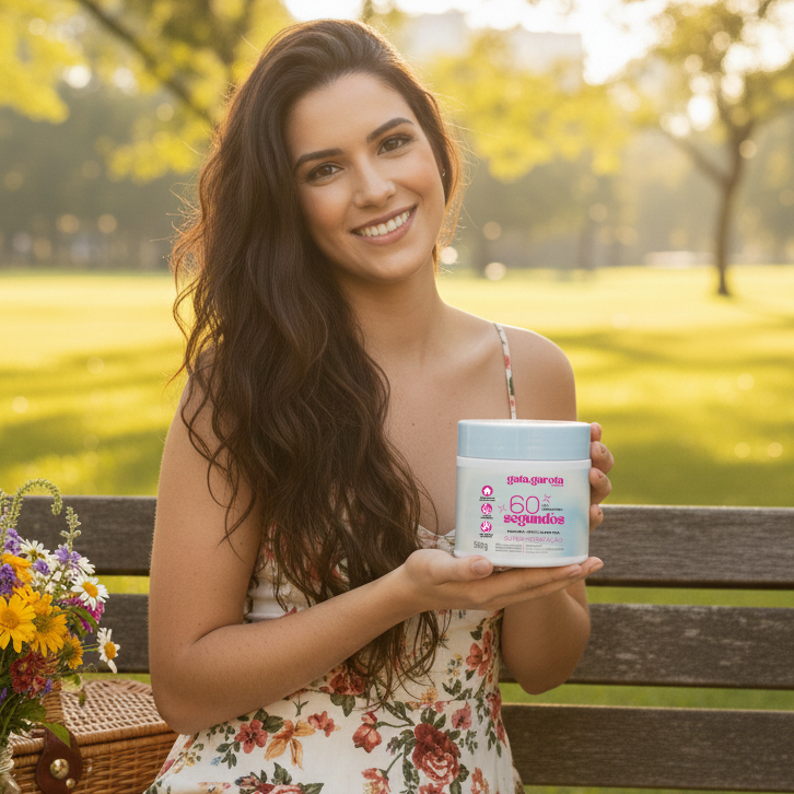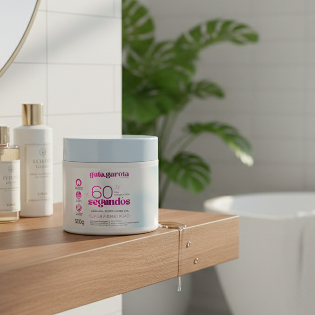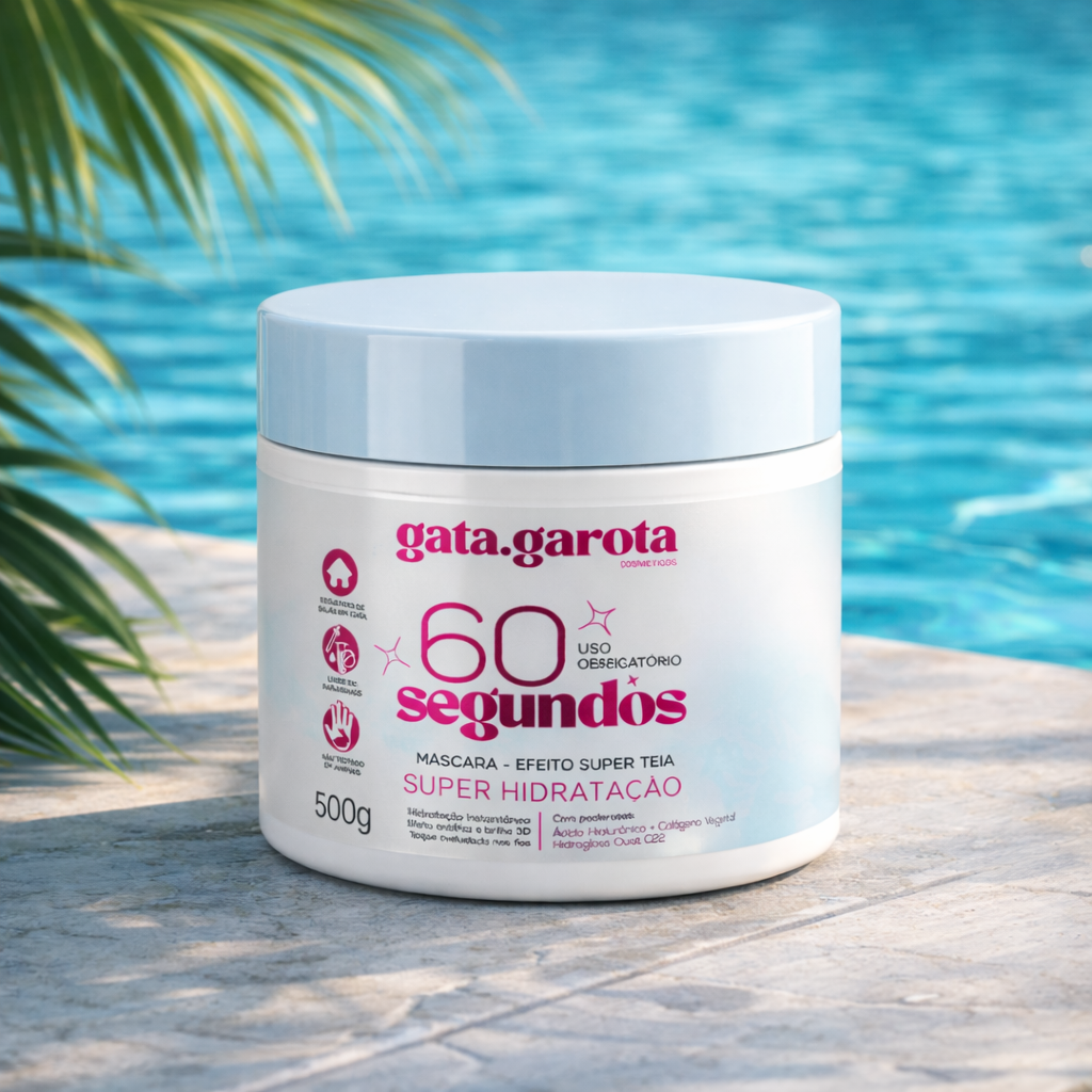 A Máscara 60 Segundos da Gata.Garota Cosméticos é uma máscara capilar ideal para devolver maciez e leveza aos fios ressecados. Enriquecida com Ácido Hialurônico, Hidragloss Quat C22 e Colágeno Vegetal fortalece os fios, aumentando sua elasticidade e maleabilidade, proporcionando mais resistência, ação antifrizz e um brilho espetacular.